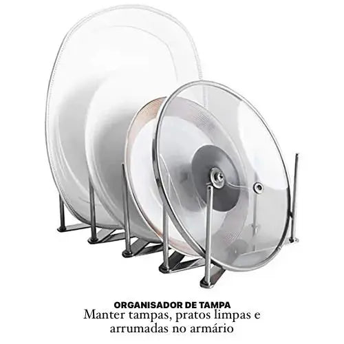 Função: Organizador de tampas, tábuas, formas, potes, livros e utensílios